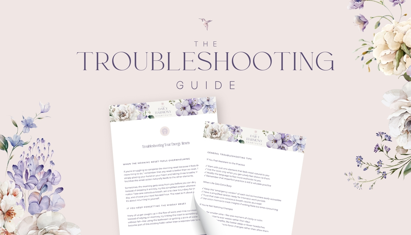 Sure, I created Daily Harmony Shortcuts to help you maintain your energy and clarity while running your business. That matters - especially when you're serving others from your heart and wisdom!
