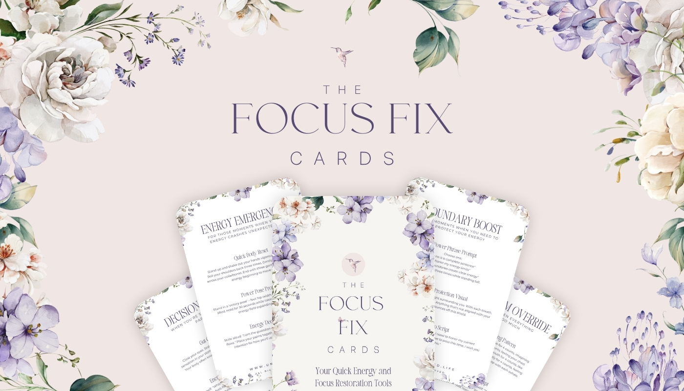 Get my proven power reset protocols and focus fix cards, which help busy women business owners restore their energy, sharpen their focus, and feel in control again—all in less than a few minutes a day.